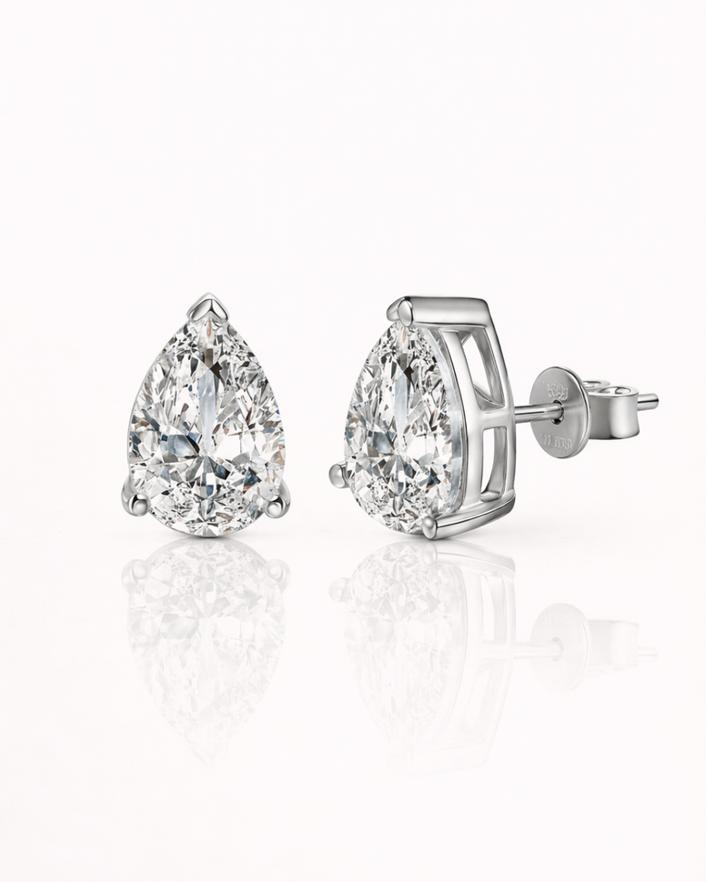 Astrid Earring är eleganta studs med droppformad moissanite som ger ett klart och intensivt skimmer. Den klassiska vattenfallsformen skapar ett tidlöst och romantiskt uttryck. Tillverkade i 925 sterlingsilver och levereras med GRA-certifikat. Finns i 1 ct eller 2 ct.