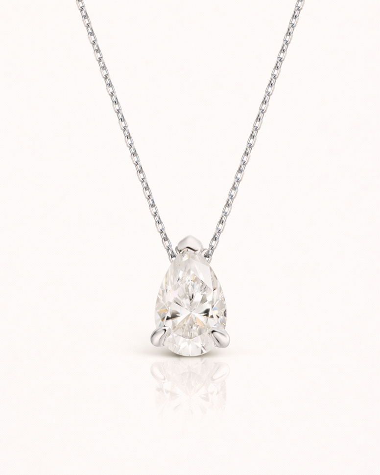 Elvira Drop Necklace är ett elegant halsband med en droppformad moissanite som fångar ljuset med klar, diamantlik briljans. Den klassiska silhuetten ger ett feminint och sofistikerat uttryck – perfekt för både vardag och speciella tillfällen. Tillverkat i äkta 925 sterlingsilver och prytt med moissanite i hög klarhet och D-färg för maximal lyster.