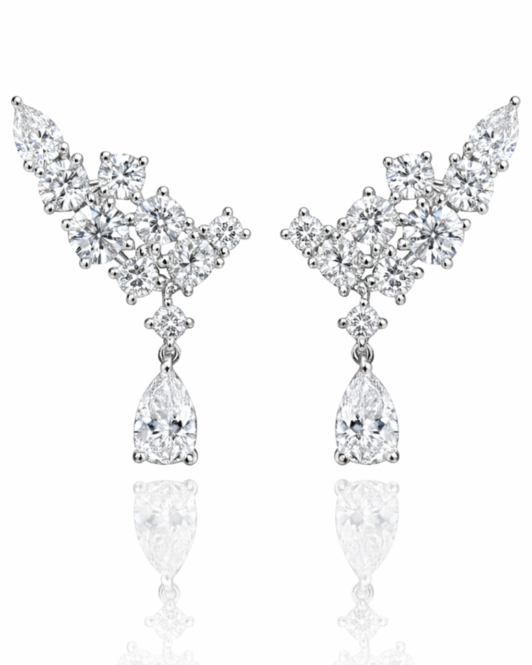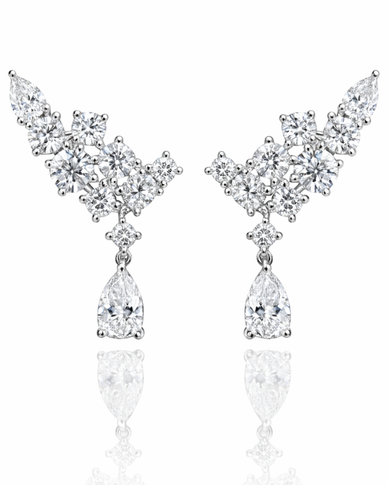 Lilly Earring är skapade för att göra intryck. Den eleganta silhuetten följer örats linje och avslutas med en droppformad moissanite som fångar ljuset med intensiv briljans. Totalt 6,1 ct moissanite i D-färg och VVS1-klarhet ger ett kristallklart, diamantlikt skimmer vid varje rörelse. Tillverkade i 925 sterlingsilver och levereras med GRA-certifikat.